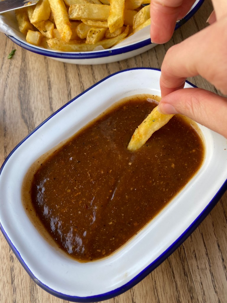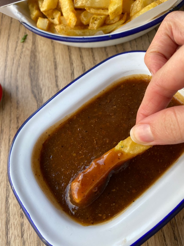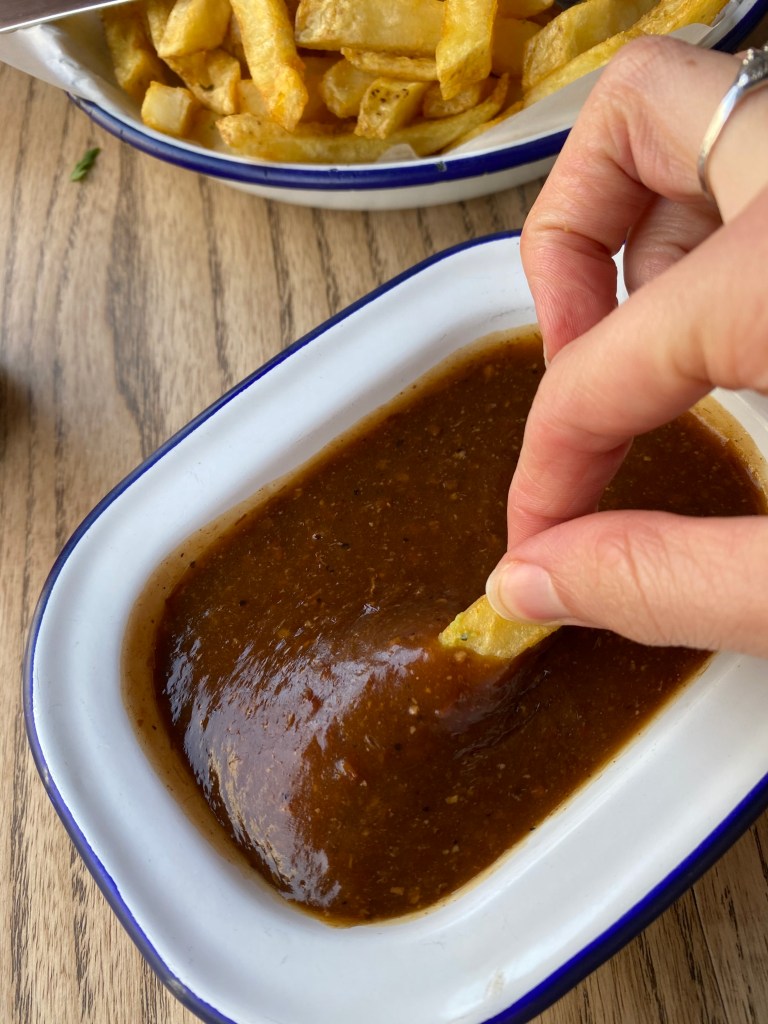 Other than this experience of their burger, Honest Burgers’ fries are the best. I love a good, chunky, home-made style chip. When I was little, my parents used to make chips and they would not hold back on the rosemary. So these fries really remind me of that. I also always order their beef & bacon gravy as a dip, which is utterly drool-worthy. I could totally drink it with a straw!